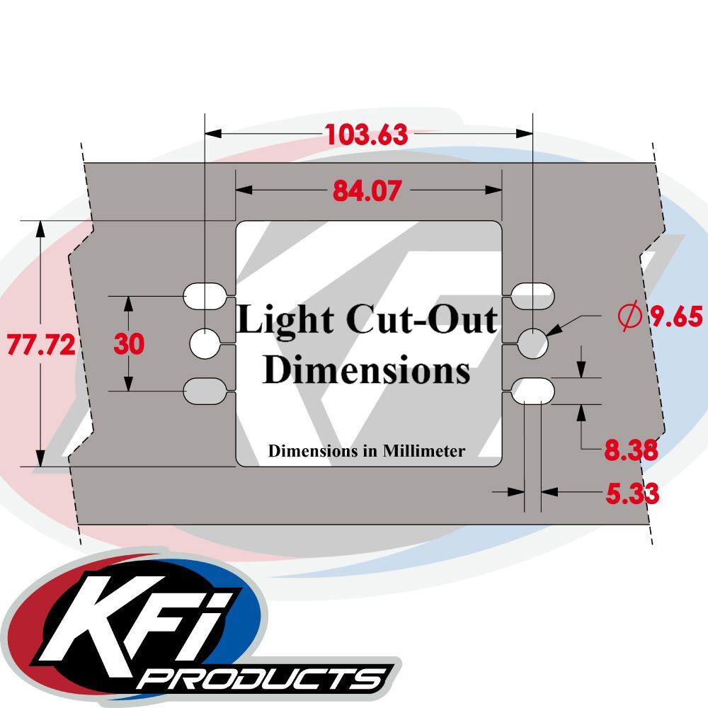 - KFI Formed bumper has 2 locations for 3" Flush Mounted Cube Lights (use dimensions below for compatibility).