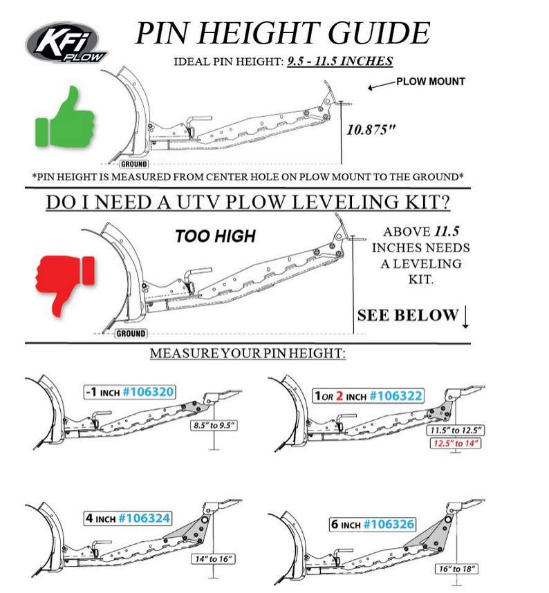 Keep your UTV plow blade perfectly level with the KFI Pro 2.0 Push Tube +6 in. Leveling Kit, designed to ensure your plow sits at the ideal height for machines with 16"-18" ground clearance. Crafted to work seamlessly with KFI UTV SQ Push Tubes, this kit is built from durable steel, shot-blasted and powder-coated black for long-lasting performance in tough conditions. Installation is simple, use your original push tube hardware or add the optional HK-398 kit for a complete setup, making it a must-have for precise, efficient plowing.